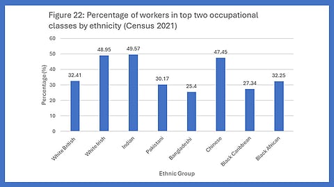“The ethnic group with the highest concentration of professional workers was Indian – with British Indians also having the highest rate of home ownership – with 71 per cent living in a property which is either owned outright or owned with a mortgage/loan or shared ownership,” it notes.
