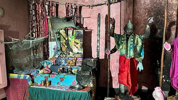 "The Lakshminarayan temple is our ancestral temple. Last night, the attackers entered the house from the rear side, poured petrol over the idols and set them on fire. The idols of Lakshmi and Narayan, which were dressed in resplendent saree and dhoti, with a curtain behind them, all burnt down. The attackers had some bigger plans. We had gone out for some time. Our neighbours saw the fire and all of them tried to douse it with water. The attackers were present here at that time, but ran away after hearing the sound of our footsteps," he said.