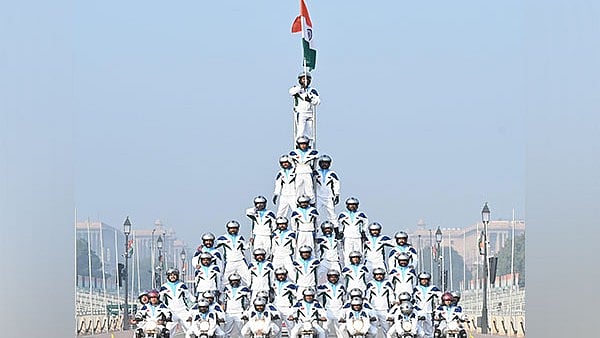 The formation, measuring an impressive 20.4 feet and comprising 40 men on 7 motorcycles, covered a distance of 2 kilometres on Kartvya Path from Vijay Chowk to India gate.