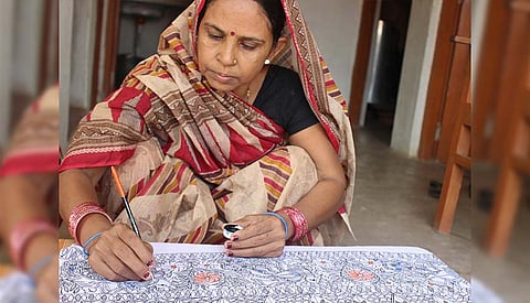 During the pandemic, Ihitashri reached out to the artisans from various clusters, self-help groups and her own NGO workers to make cotton masks that then had Madhubani paintings on them.