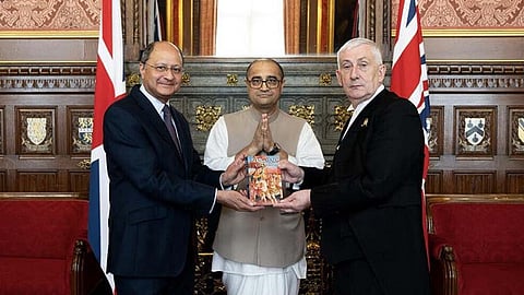 The British Indian former minister presented a special copy of the ‘Bhagavad Gita’ to the Speaker of the House of Commons, Sir Lindsay Hoyle, for use by Hindu MPs following their election to Parliament.