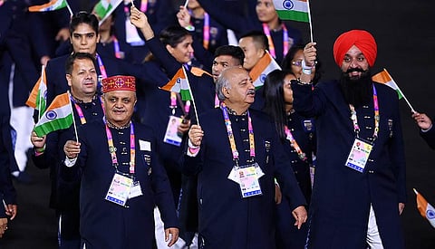 Olympic medalist P.V. Sindhu and the men's hockey team captain Manpreet Singh led the Indian contingent at the opening ceremony at Alexander Stadium in Birmingham.